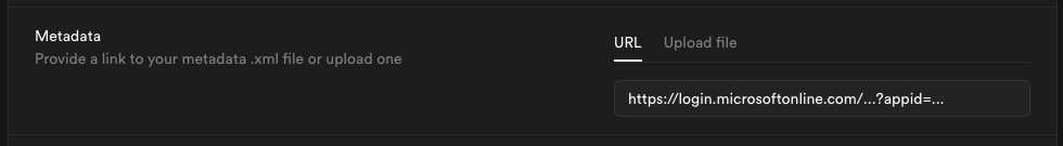 Enter the metadata URL you obtained from Step 7 into the Metadata URL field: